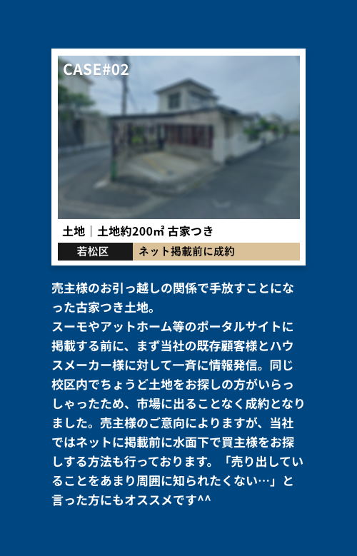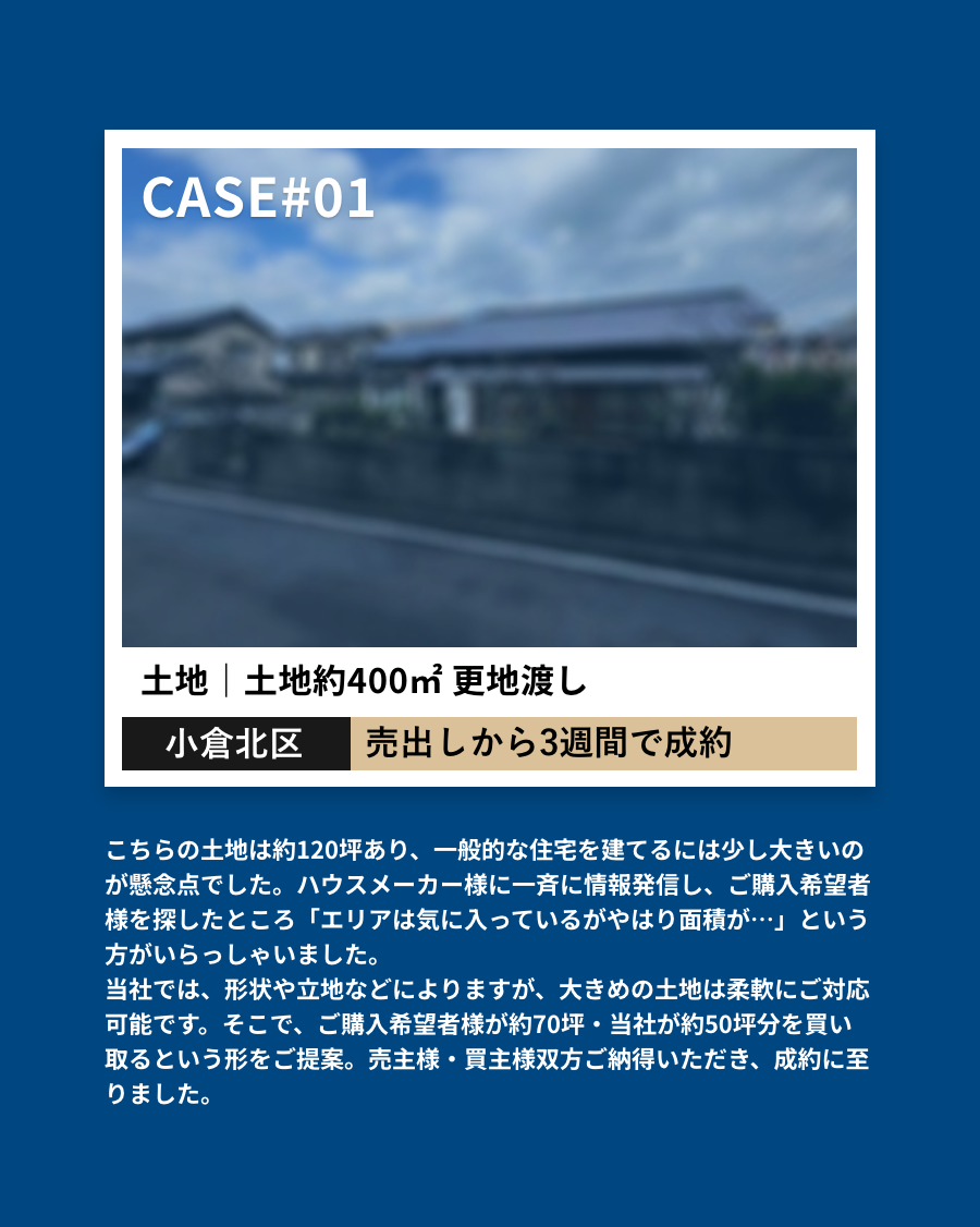 地域密着型と全国ネットワークを活かし、売却に特化した強力な宣伝力でスムーズな取引を実現。お客様の売却をしっかりサポートします。