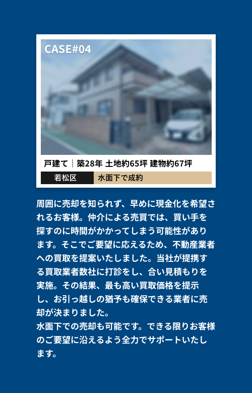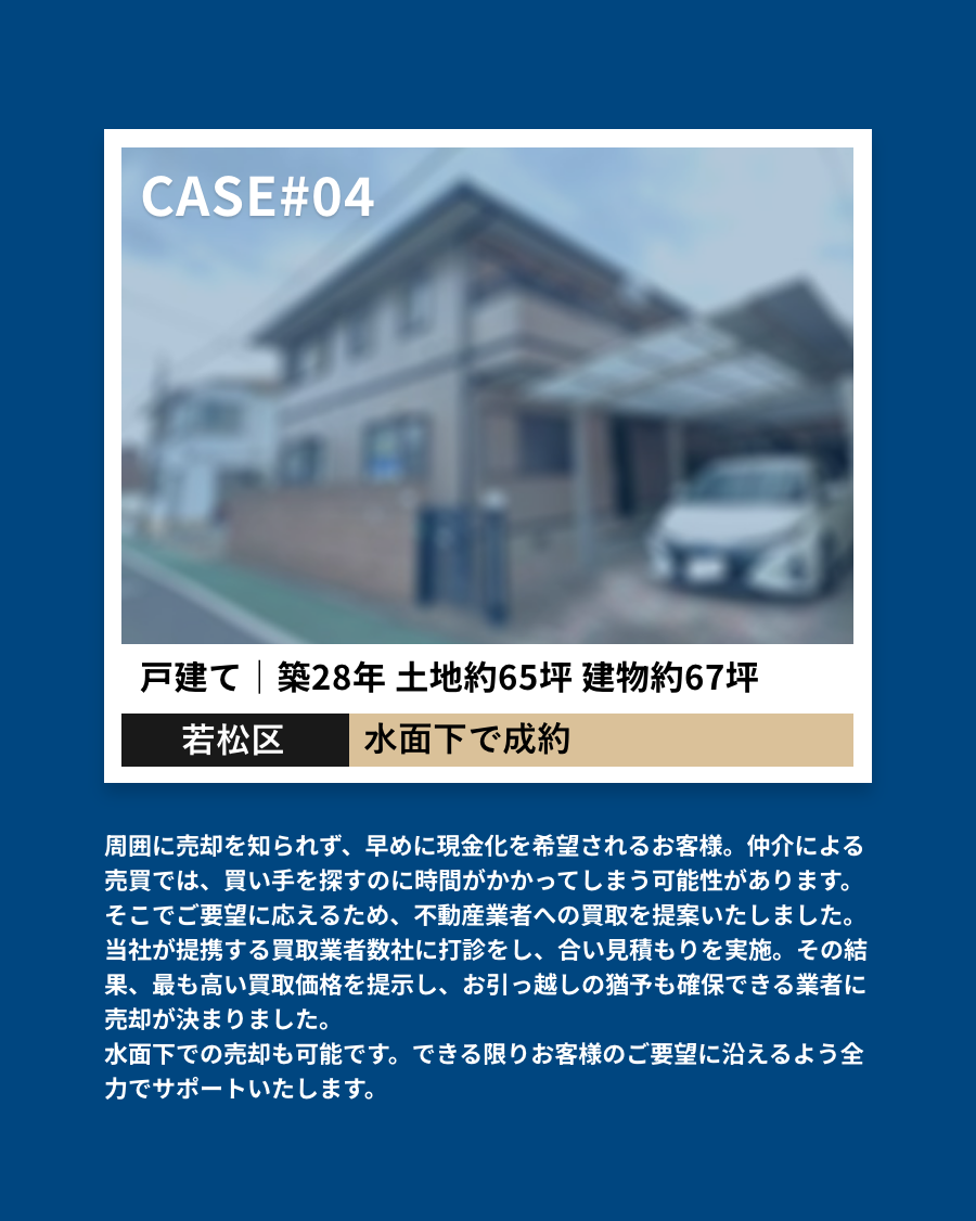 ご相談内容やご事情は秘密厳守。プライバシーに配慮しながら、安心して不動産売買を進めることができます。ネット掲載せず水面下で売買活動をすることも可能です。